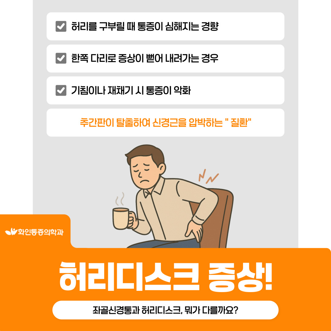 | 오래 앉아 있으면 다리가 당기는 느낌, 좌골신경통인가요? 허리디스크인가요? |